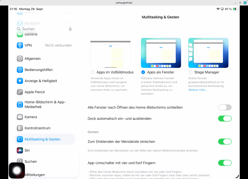 - Aktive unter Einstellungen / Multitasking & Gesten Apps als Fenster